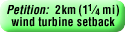 A szélturbinák min. 2 km távolságban legyenek a lakott területektől!